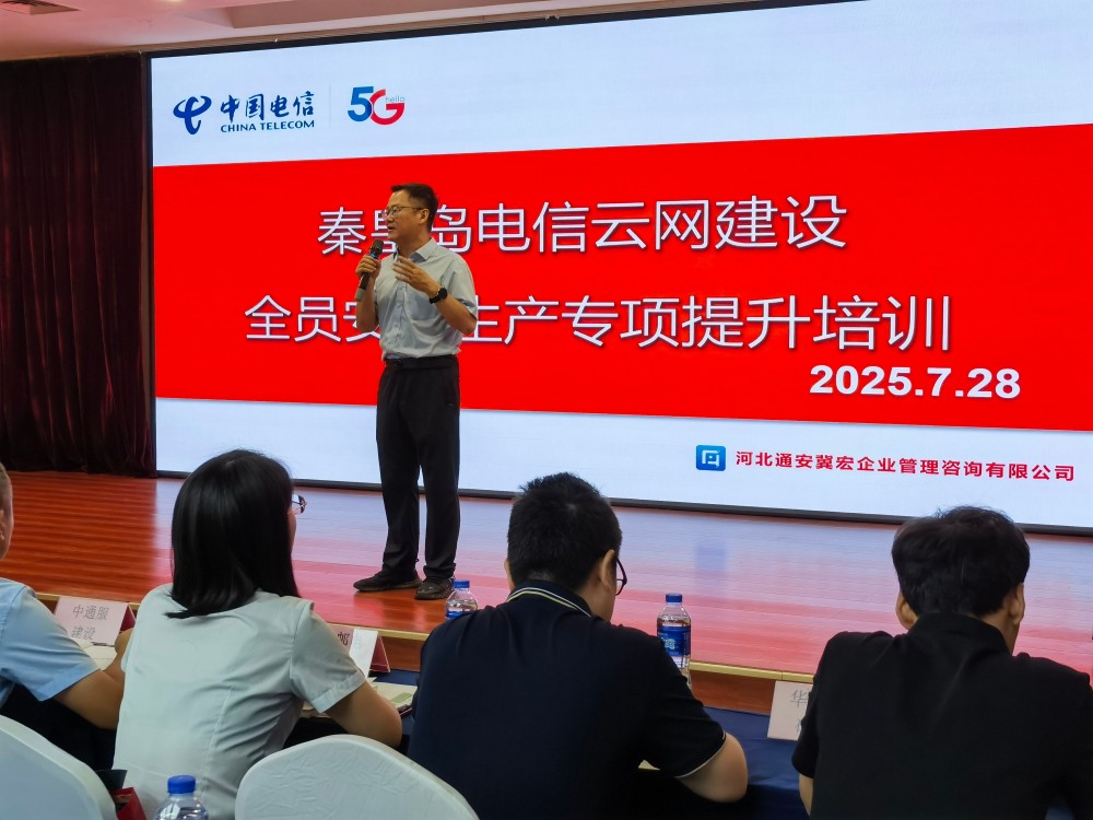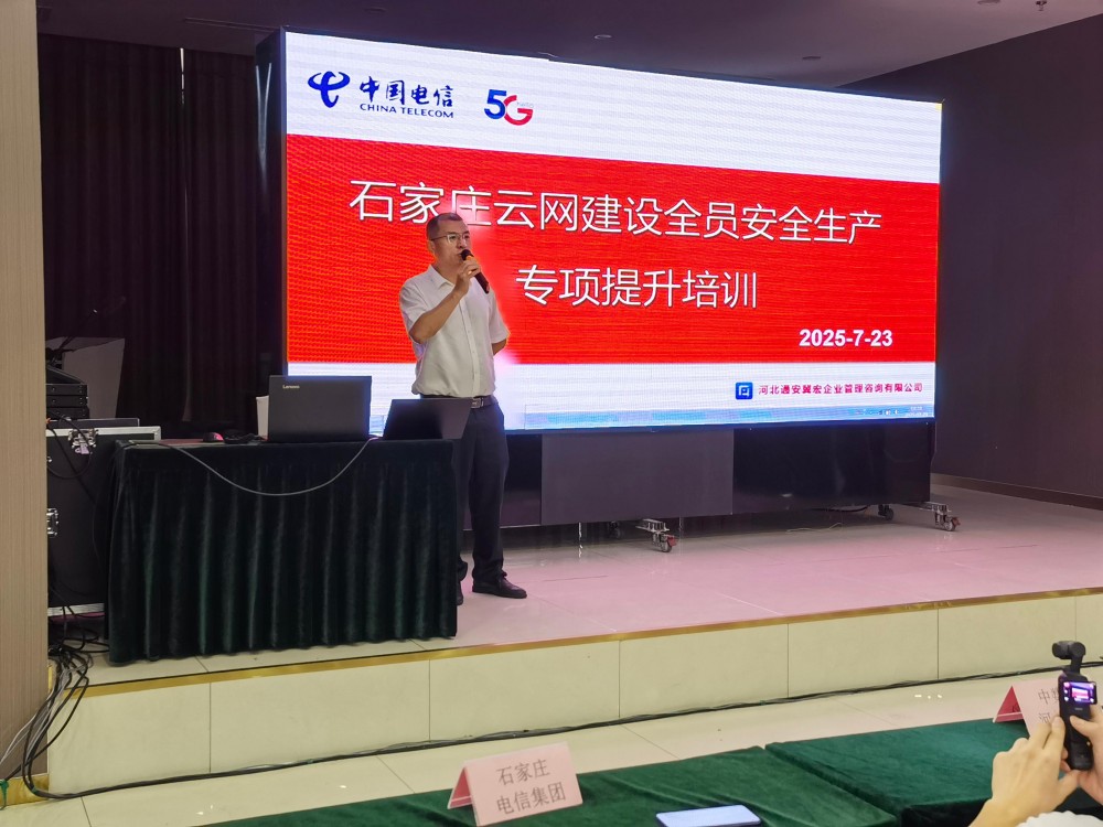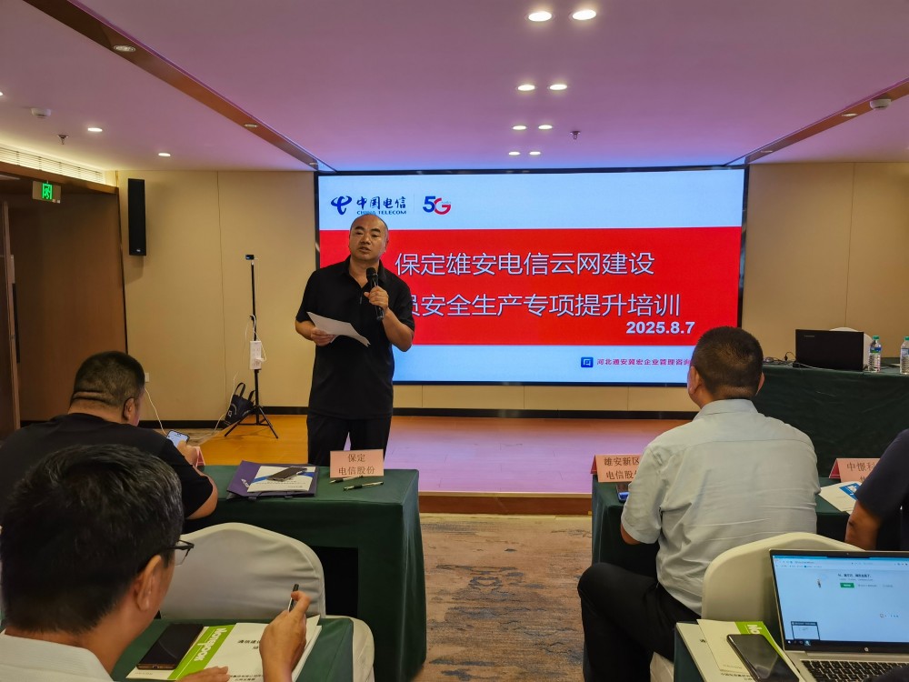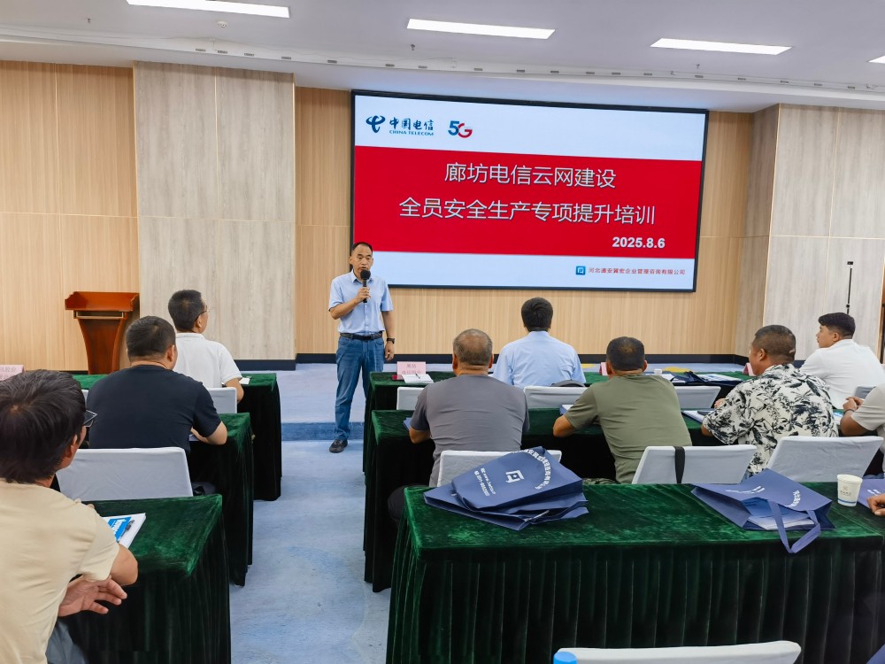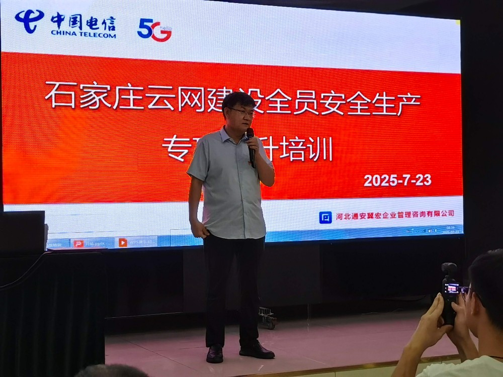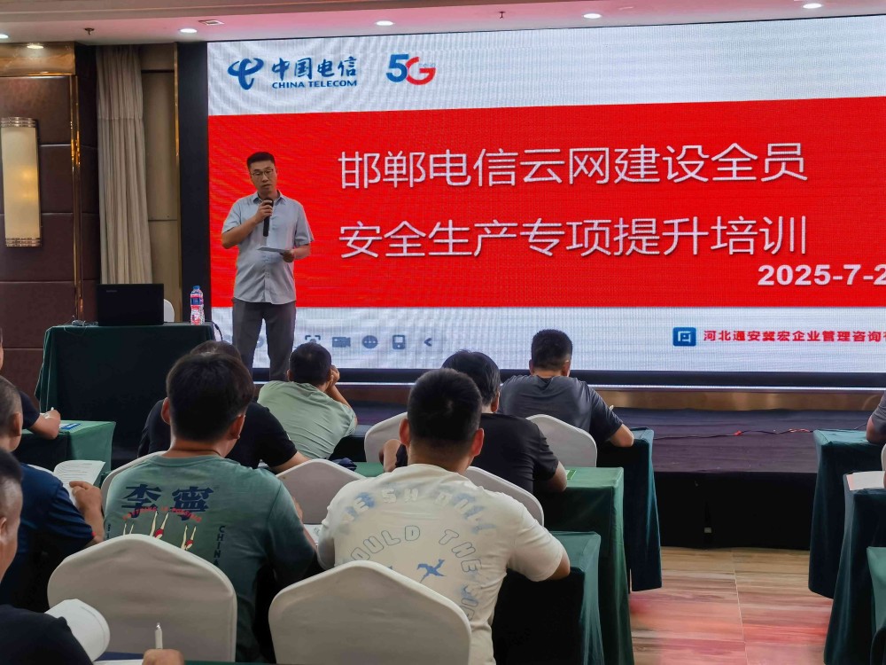 2025年7月23日-8月7日,由河北电信云网发展部组织,河北通安冀宏企业管理咨询有限公司承办的“河北电信云网建设全员安全提升专项培训”在各地市圆满举行。共有工程主管及工程参建单位人员近2000人参加了此次培训,培训内容包括安全生产法、通信建设工程安全生产管理规定、信息通信建设工程重大事故隐患判定标准、集团隐患清单指引、近期安全生产要求、通信建设工程安全生产操作规范及事故案例警示教育等。通过培训提高了广大参建人员的安全意识,增加了安全知识,符合河北电信对工程项目建设参建人员上岗前安全培训要求。