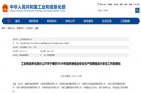 工业和信息化部办公厅关于做好2026年信息通信业安全生产和网络运行安全工作的通知