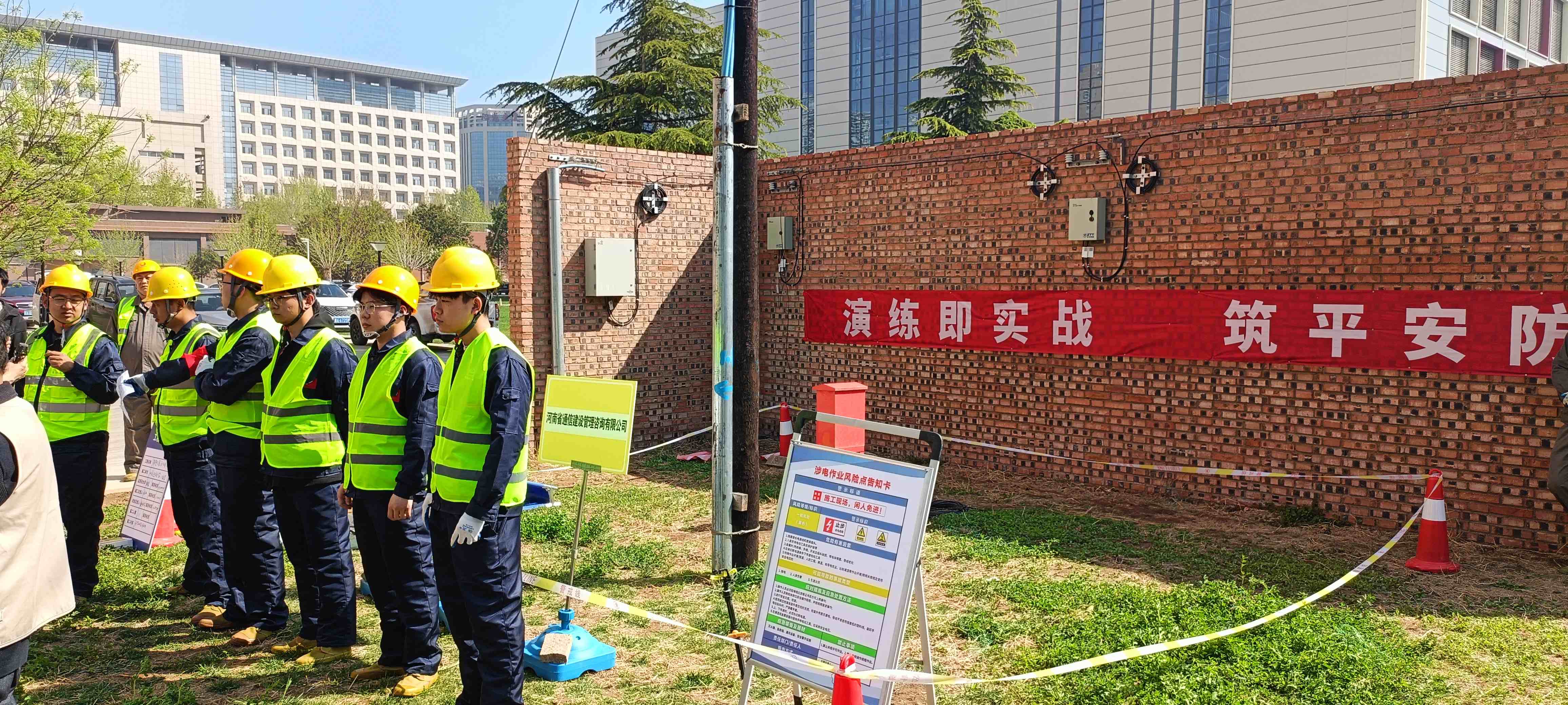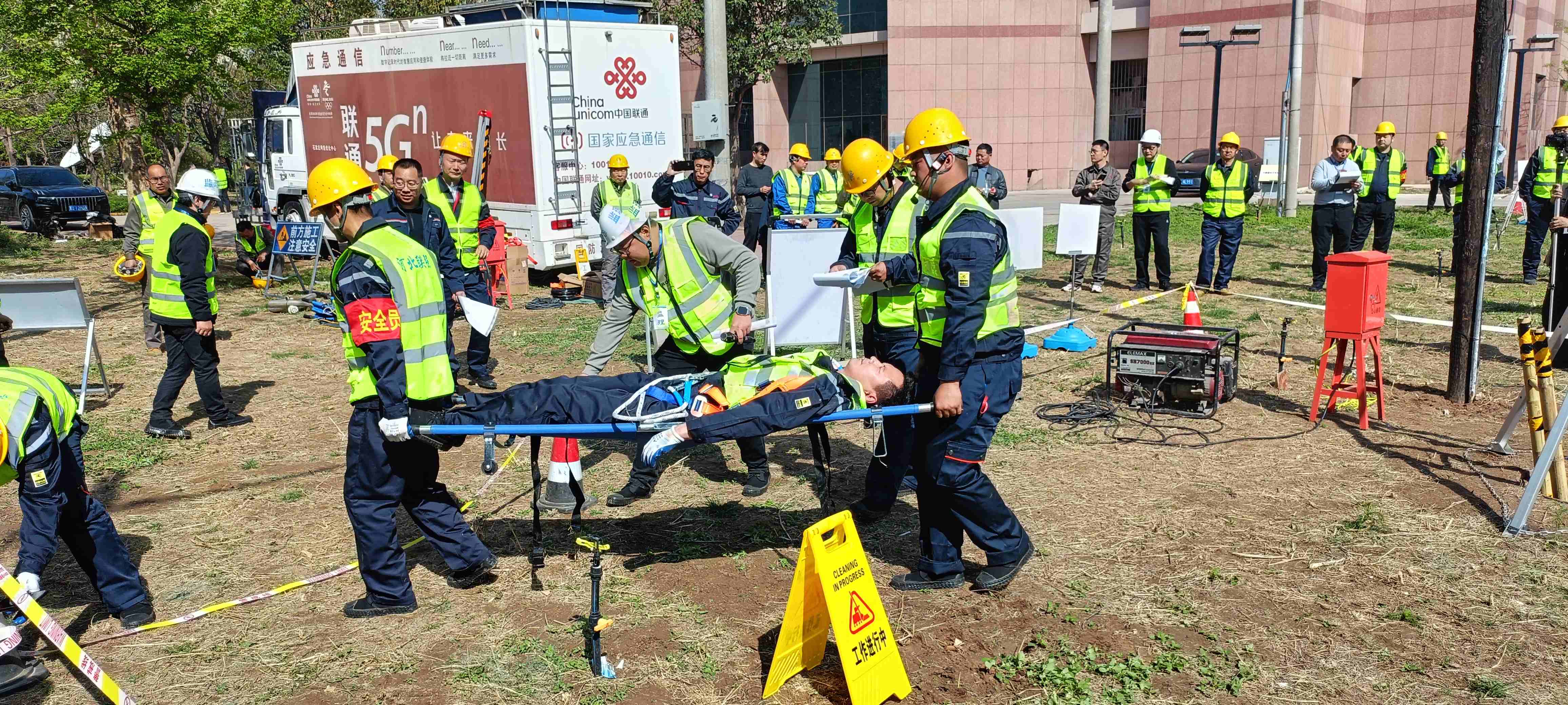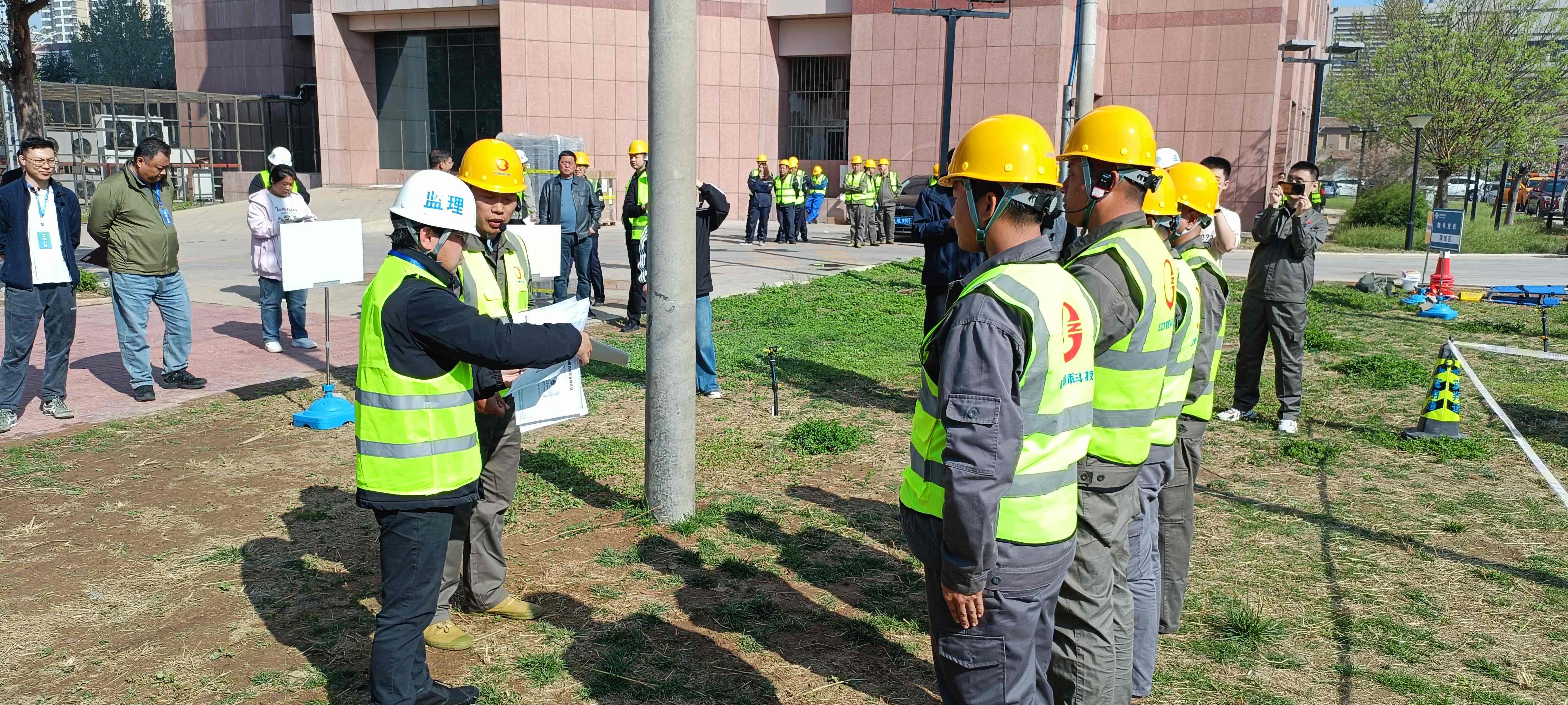 为强化施工现场安全管控,提升应急处置能力,2026年4月10日,河北省联通及石家庄市联通联合组织中标施工单位中憬科技集团有限公司、河北联强通信科技有限公司、中国通信建设第一工程局有限公司、中徽建技术有限公司及监理单位河南省通信建设管理咨询有限公司项目部共60多人,在联通二枢纽院内顺利开展高处坠落、触电、有限空间作业专项应急演练。